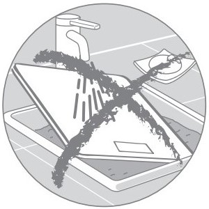 Nu utiliza bureți metalici sau prafuri de curățat. Nu scufunda niciodată dispozitivul în apă.
